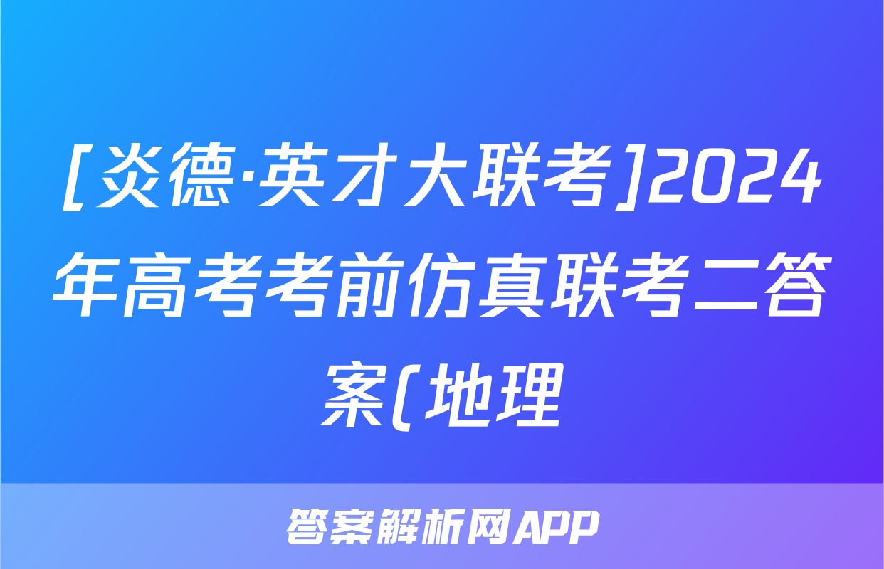 [炎德·英才大联考]2024年高考考前仿真联考二答案(地理)