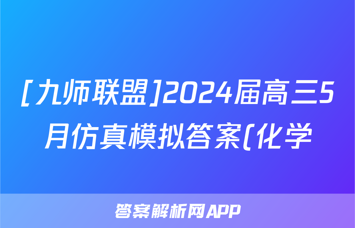 [九师联盟]2024届高三5月仿真模拟答案(化学)正在持续更新,目前2024-2025英语周报答案网为大家整理了相关试题及答案,供大家查缺补漏,高效提升成绩。