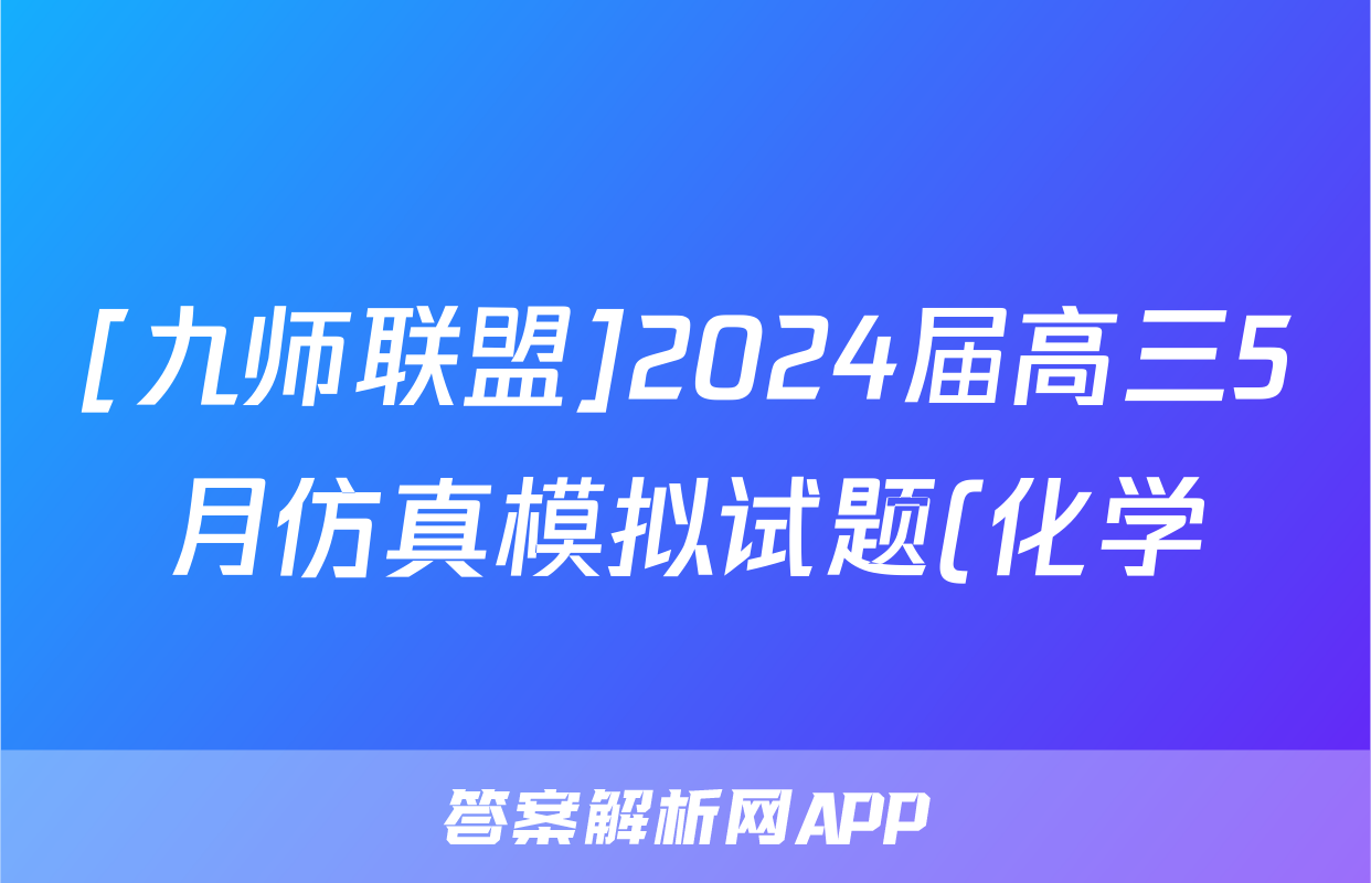 [九师联盟]2024届高三5月仿真模拟试题(化学)正在持续更新,目前2024-2025英语周报答案网为大家整理了相关试题及答案,供大家查缺补漏,高效提升成绩。