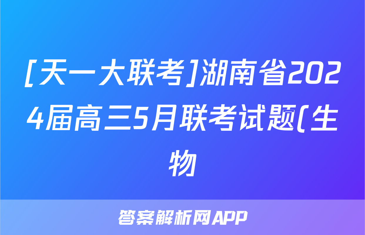 [天一大联考]湖南省2024届高三5月联考试题(生物)正在持续更新,目前2024-2025英语周报答案网为大家整理了相关试题及答案,供大家查缺补漏,高效提升成绩。
