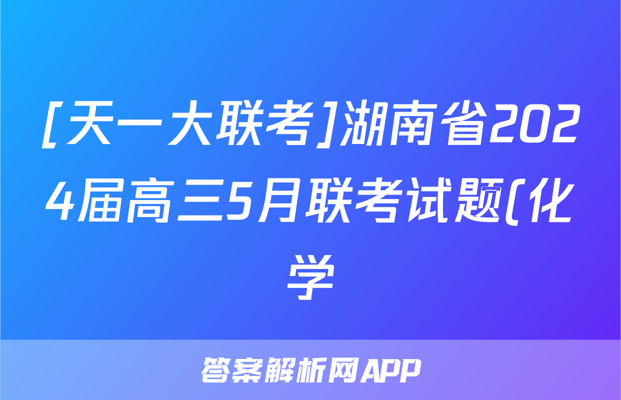[天一大联考]湖南省2024届高三5月联考试题(化学)正在持续更新,目前2024-2025英语周报答案网为大家整理了相关试题及答案,供大家查缺补漏,高效提升成绩。