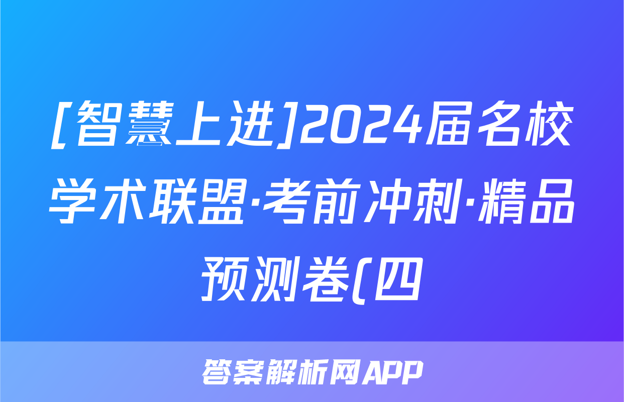 [智慧上进]2024届名校学术联盟·考前冲刺·精品预测卷(四)4试卷及答案答案(英语)正在持续更新,目前2024-2025英语周报答案网为大家整理了相关试题及答案,供大家查缺补漏,高效提升成绩。