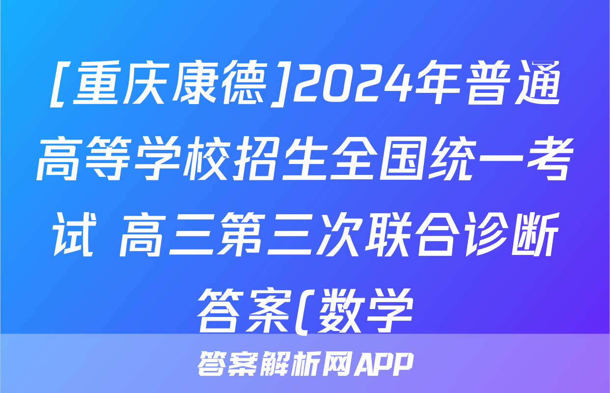 [重庆康德]2024年普通高等学校招生全国统一考试 高三第三次联合诊断答案(数学)正在持续更新,目前2024-2025英语周报答案网为大家整理了相关试题及答案,供大家查缺补漏,高效提升成绩。