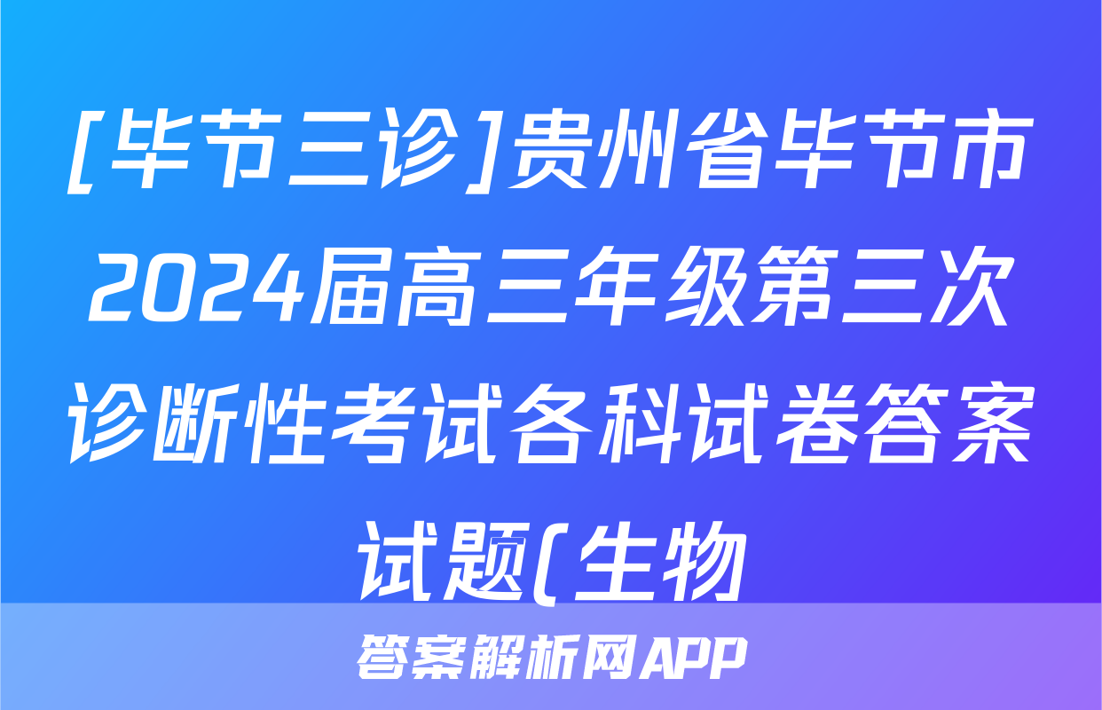 [毕节三诊]贵州省毕节市2024届高三年级第三次诊断性考试各科试卷答案试题(生物)正在持续更新,目前2024-2025英语周报答案网为大家整理了相关试题及答案,供大家查缺补漏,高效提升成绩。