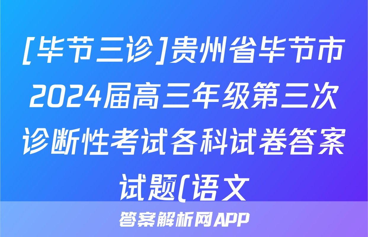 2、[毕节三诊]贵州省毕节市2024届高三年级第三次诊断性考试各科试卷答案答案(语文)