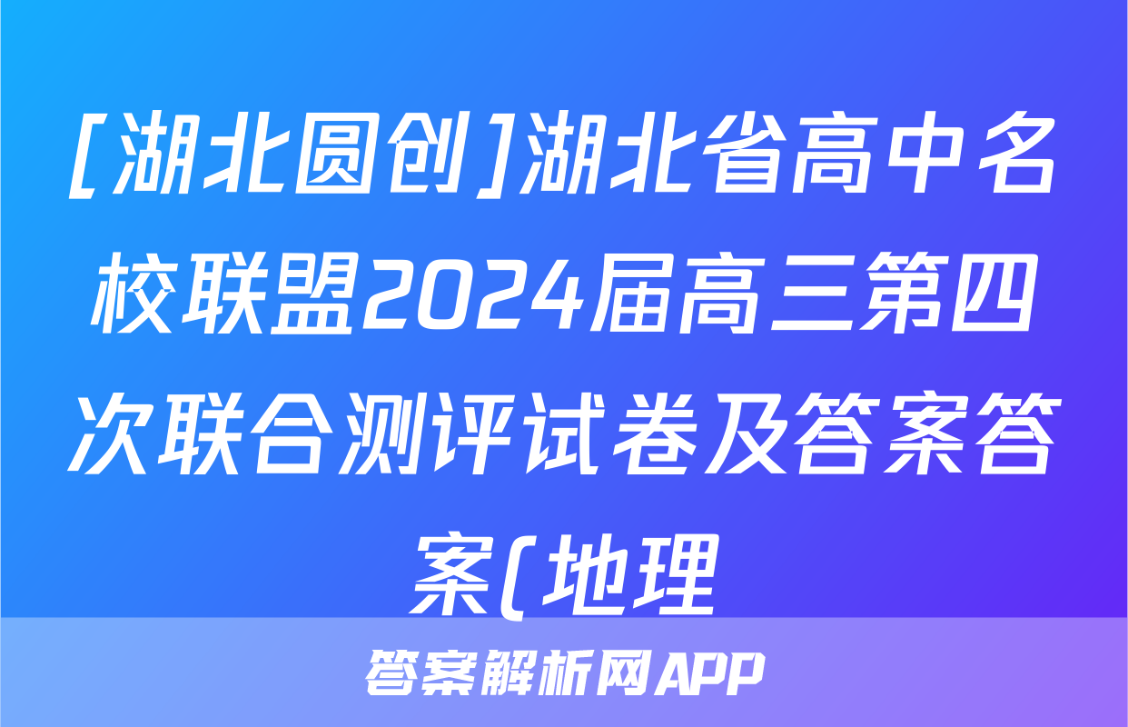 [湖北圆创]湖北省高中名校联盟2024届高三第四次联合测评试卷及答案答案(地理)正在持续更新,目前2024-2025英语周报答案网为大家整理了相关试题及答案,供大家查缺补漏,高效提升成绩。