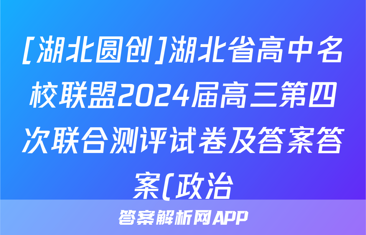 [湖北圆创]湖北省高中名校联盟2024届高三第四次联合测评试卷及答案答案(政治)正在持续更新,目前2024-2025英语周报答案网为大家整理了相关试题及答案,供大家查缺补漏,高效提升成绩。
