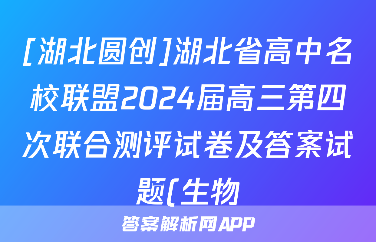 [湖北圆创]湖北省高中名校联盟2024届高三第四次联合测评试卷及答案试题(生物)正在持续更新,目前2024-2025英语周报答案网为大家整理了相关试题及答案,供大家查缺补漏,高效提升成绩。