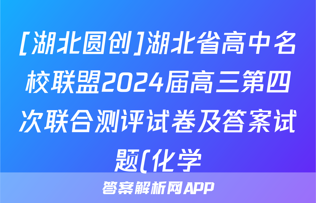 [湖北圆创]湖北省高中名校联盟2024届高三第四次联合测评试卷及答案试题(化学)正在持续更新,目前2024-2025英语周报答案网为大家整理了相关试题及答案,供大家查缺补漏,高效提升成绩。