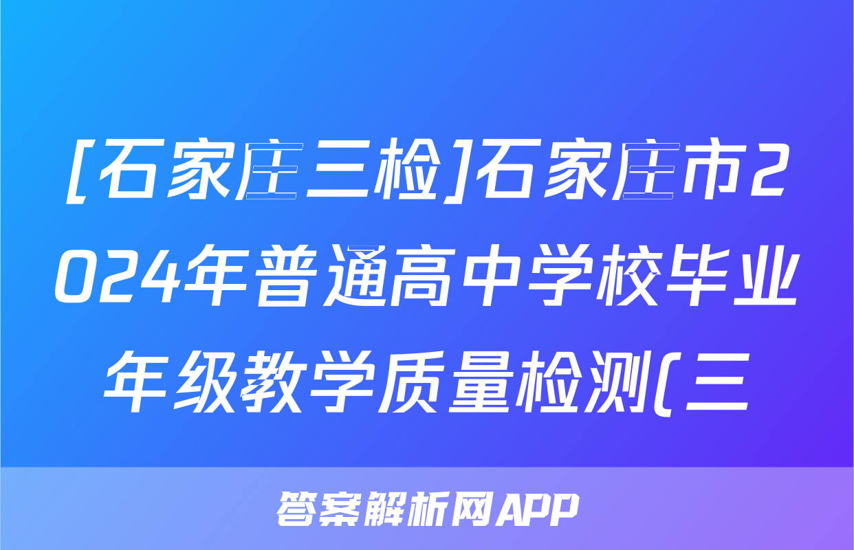 [石家庄三检]石家庄市2024年普通高中学校毕业年级教学质量检测(三)3答案(地理)正在持续更新,目前2024-2025英语周报答案网为大家整理了相关试题及答案,供大家查缺补漏,高效提升成绩。