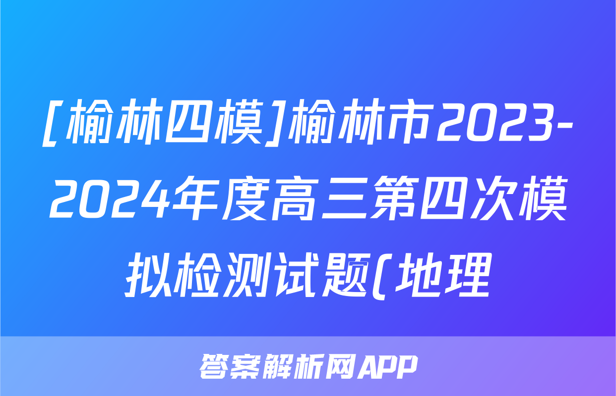 [榆林四模]榆林市2023-2024年度高三第四次模拟检测试题(地理)正在持续更新,目前2024-2025英语周报答案网为大家整理了相关试题及答案,供大家查缺补漏,高效提升成绩。