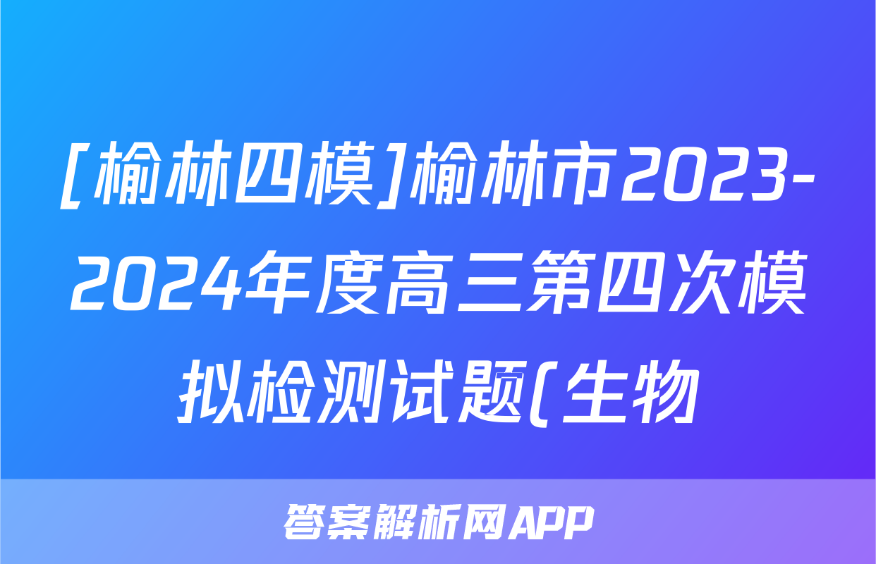 [榆林四模]榆林市2023-2024年度高三第四次模拟检测试题(生物)正在持续更新,目前2024-2025英语周报答案网为大家整理了相关试题及答案,供大家查缺补漏,高效提升成绩。