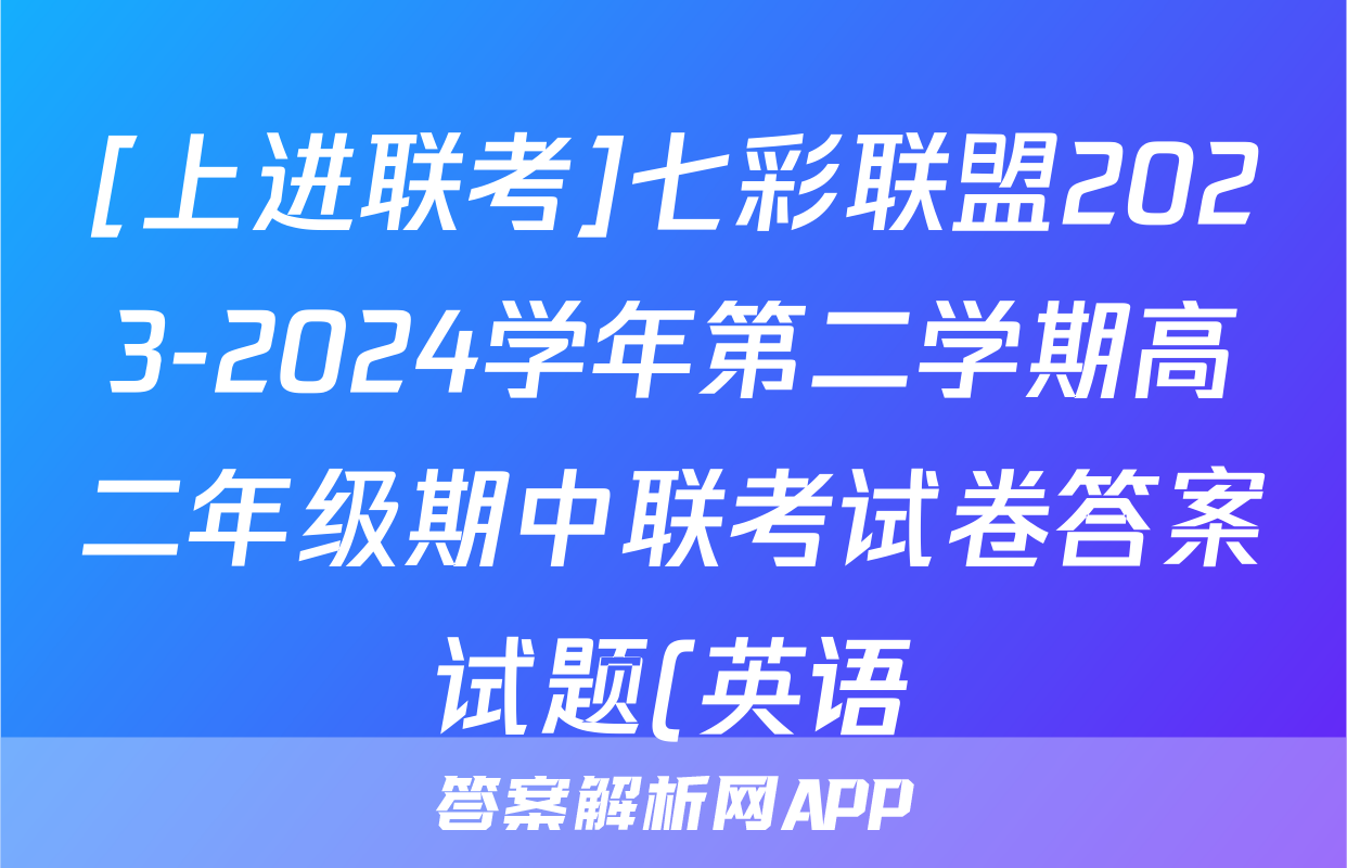 [上进联考]七彩联盟2023-2024学年第二学期高二年级期中联考试卷答案试题(英语)