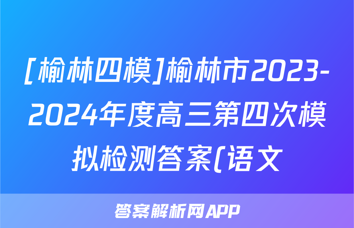 [榆林四模]榆林市2023-2024年度高三第四次模拟检测答案(语文)正在持续更新,目前2024-2025英语周报答案网为大家整理了相关试题及答案,供大家查缺补漏,高效提升成绩。