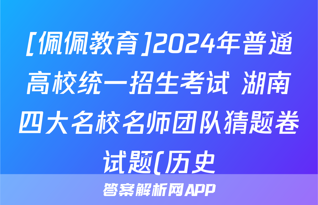 [佩佩教育]2024年普通高校统一招生考试 湖南四大名校名师团队猜题卷试题(历史)正在持续更新,目前2024-2025英语周报答案网为大家整理了相关试题及答案,供大家查缺补漏,高效提升成绩。