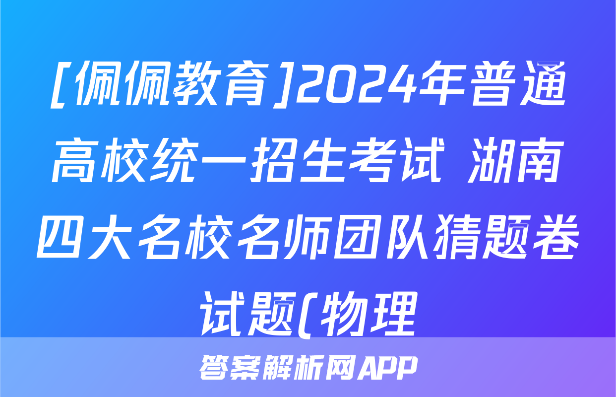 [佩佩教育]2024年普通高校统一招生考试 湖南四大名校名师团队猜题卷试题(物理)正在持续更新,目前2024-2025英语周报答案网为大家整理了相关试题及答案,供大家查缺补漏,高效提升成绩。