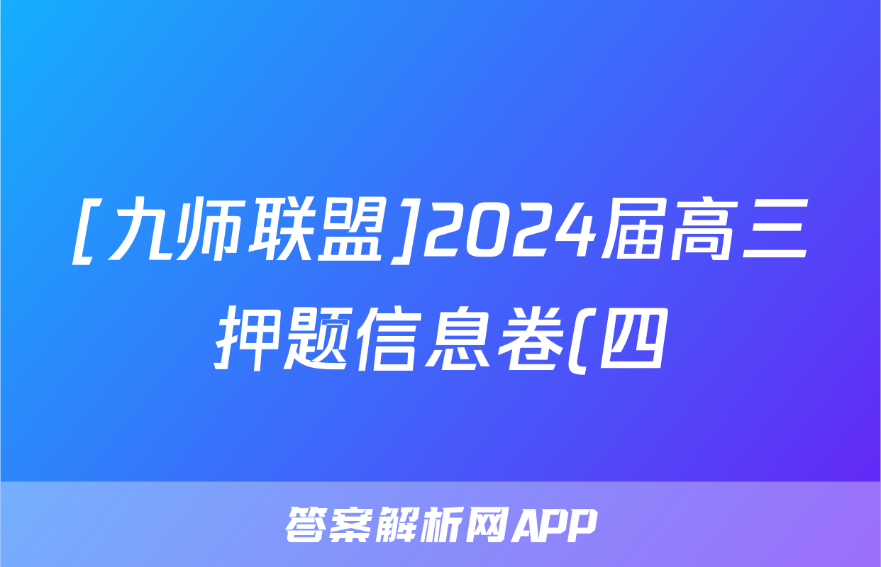 [九师联盟]2024届高三押题信息卷(四)4化学(XKB-G)试题正在持续更新,目前2024-2025英语周报答案网为大家整理了相关试题及答案,供大家查缺补漏,高效提升成绩。