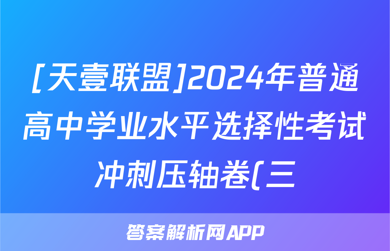 [天壹联盟]2024年普通高中学业水平选择性考试冲刺压轴卷(三)3试题(政治)正在持续更新,目前2024-2025英语周报答案网为大家整理了相关试题及答案,供大家查缺补漏,高效提升成绩。