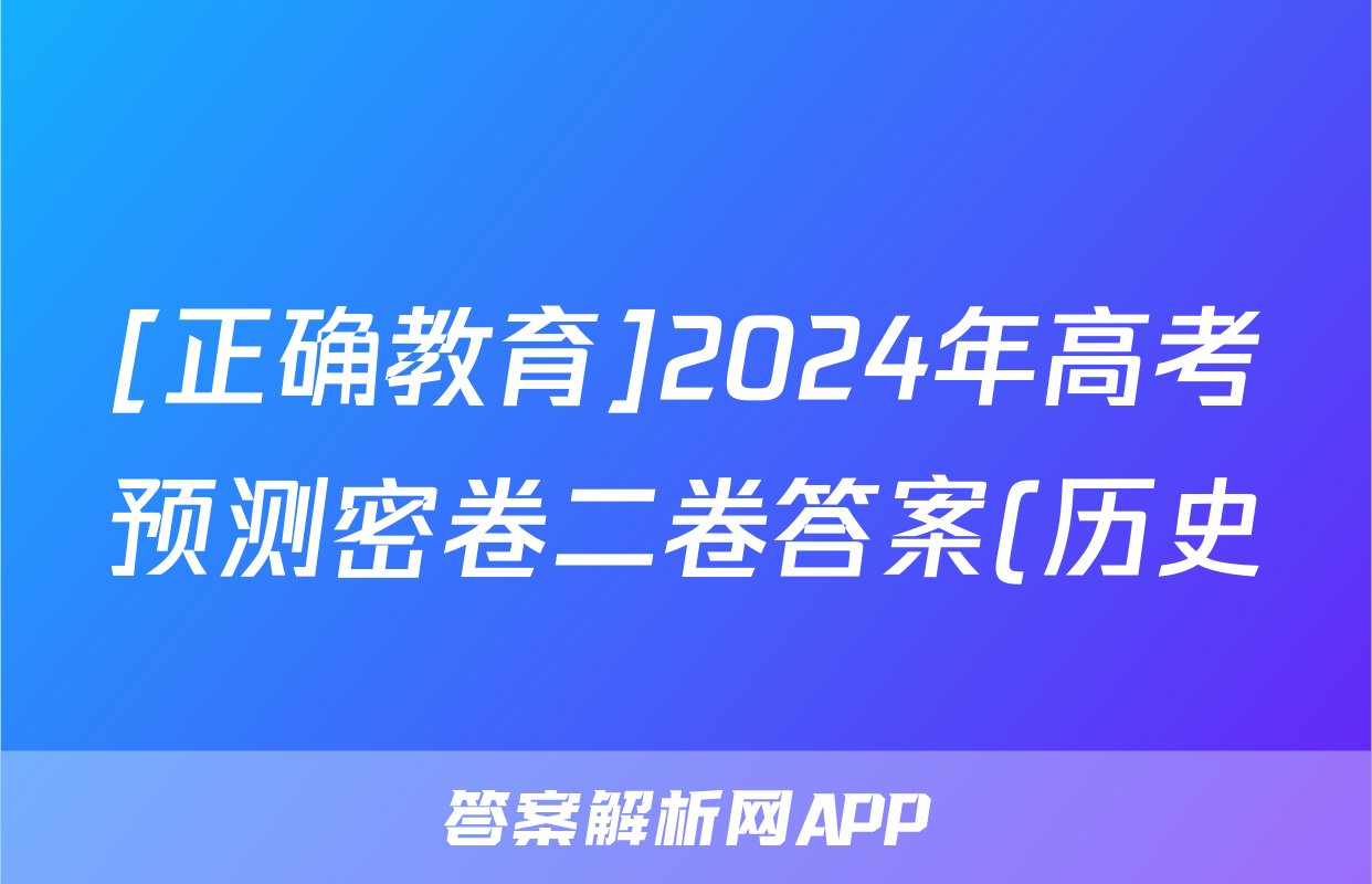 [正确教育]2024年高考预测密卷二卷答案(历史)正在持续更新,目前2024-2025英语周报答案网为大家整理了相关试题及答案,供大家查缺补漏,高效提升成绩。