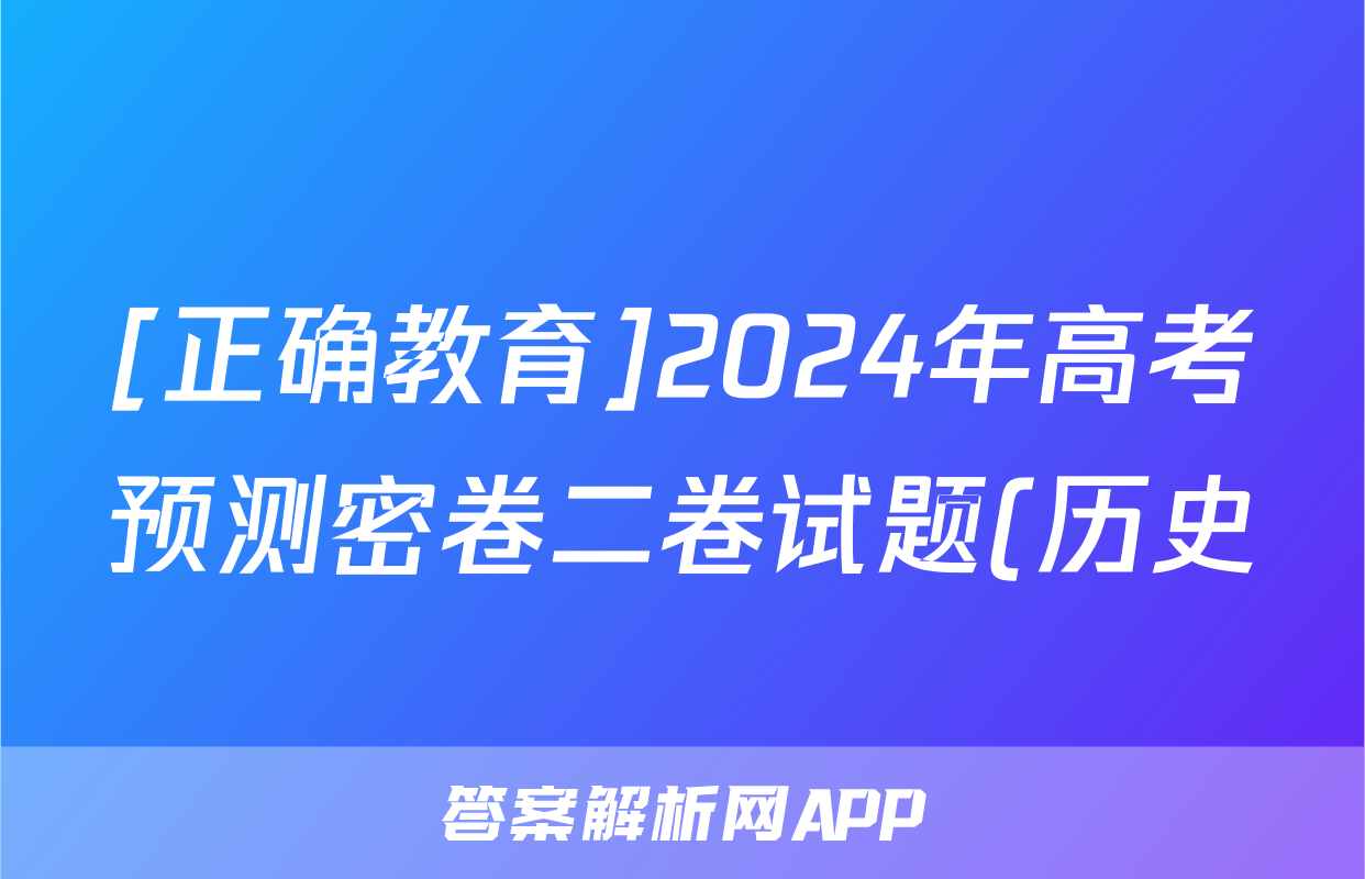 [正确教育]2024年高考预测密卷二卷试题(历史)正在持续更新,目前2024-2025英语周报答案网为大家整理了相关试题及答案,供大家查缺补漏,高效提升成绩。