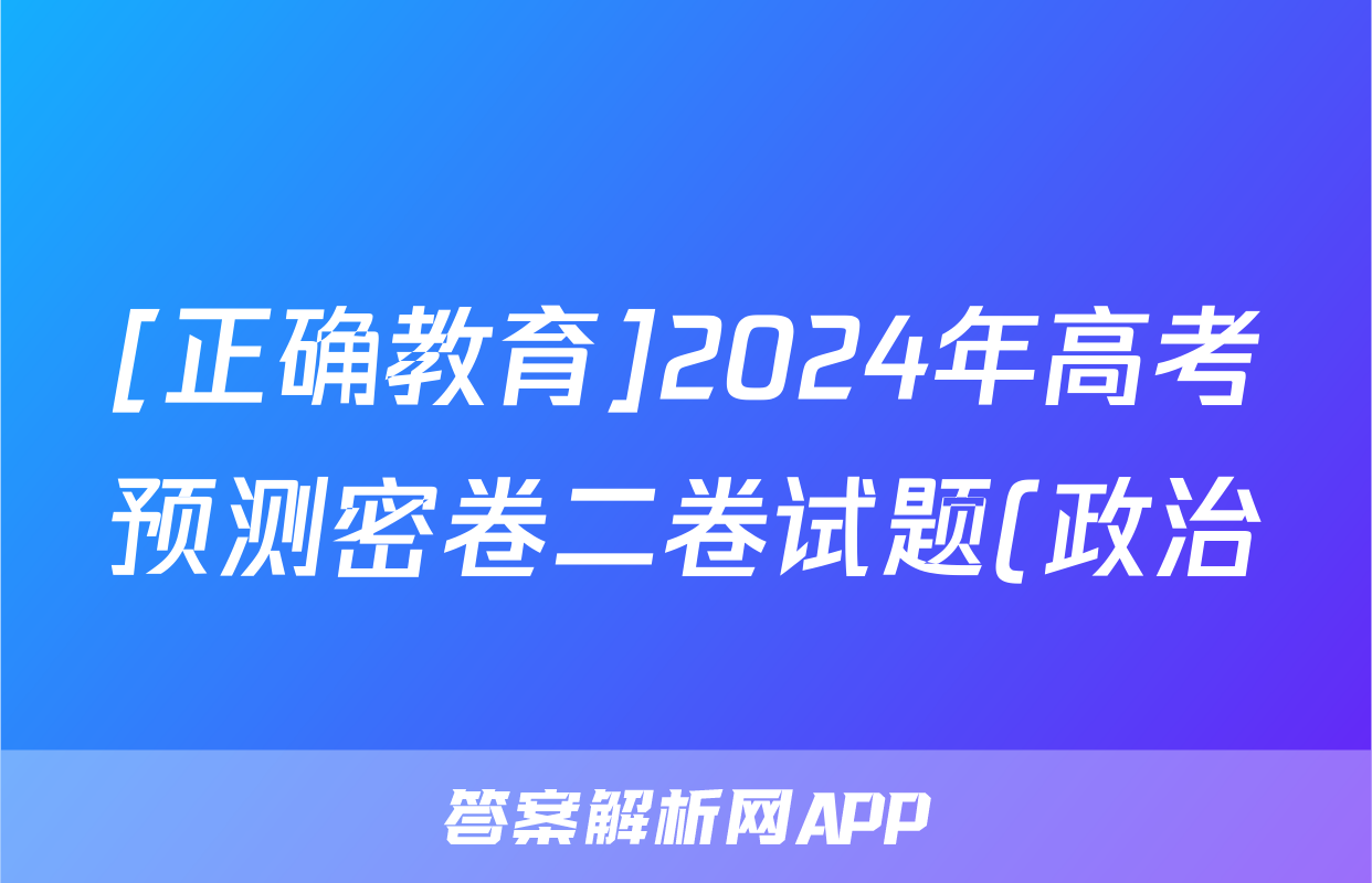 [正确教育]2024年高考预测密卷二卷试题(政治)