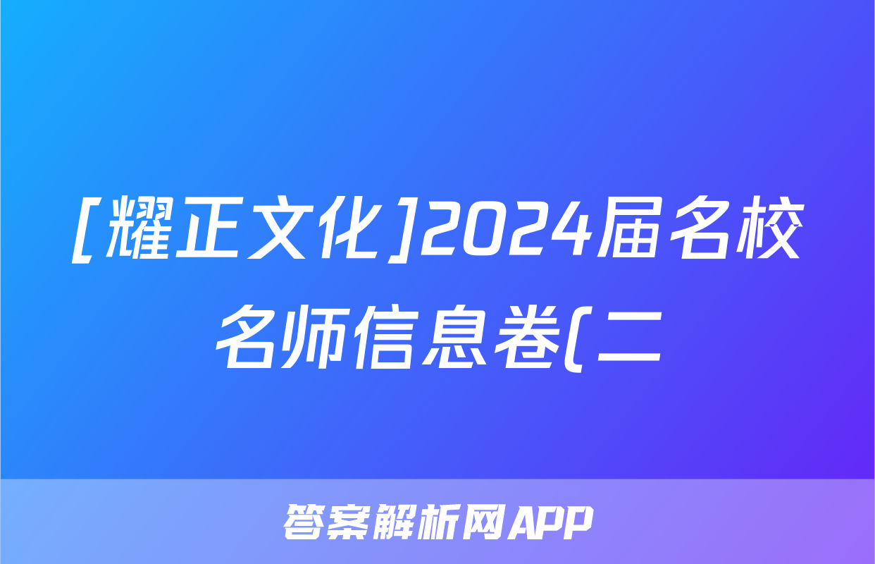 [耀正文化]2024届名校名师信息卷(二)2试题(化学)正在持续更新,目前2024-2025英语周报答案网为大家整理了相关试题及答案,供大家查缺补漏,高效提升成绩。