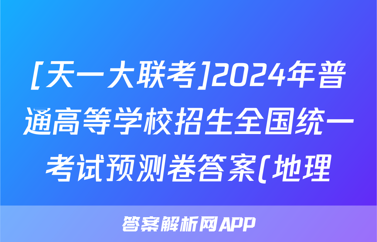 [天一大联考]2024年普通高等学校招生全国统一考试预测卷答案(地理)正在持续更新,目前2024-2025英语周报答案网为大家整理了相关试题及答案,供大家查缺补漏,高效提升成绩。