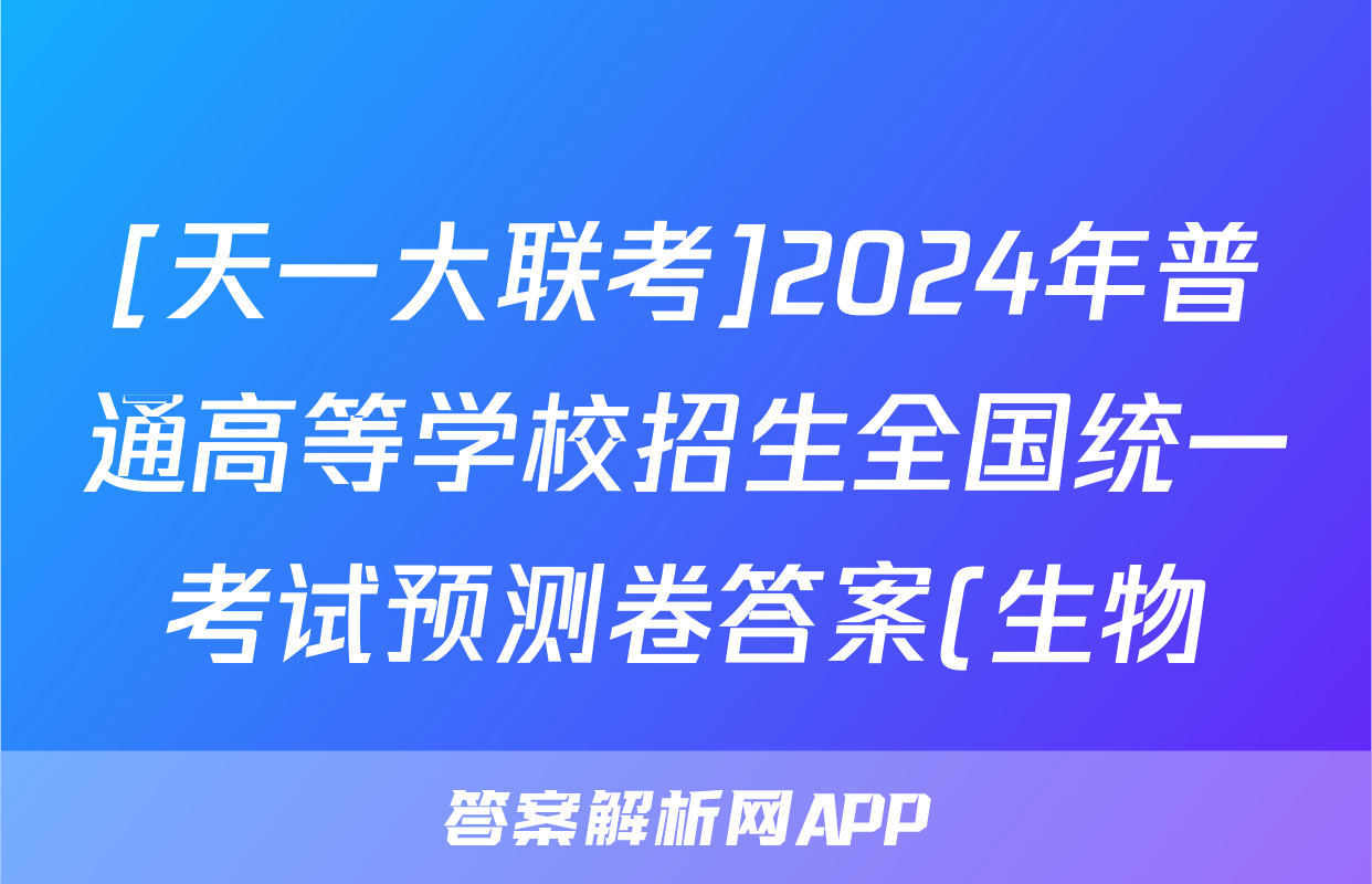 [天一大联考]2024年普通高等学校招生全国统一考试预测卷答案(生物)正在持续更新,目前2024-2025英语周报答案网为大家整理了相关试题及答案,供大家查缺补漏,高效提升成绩。