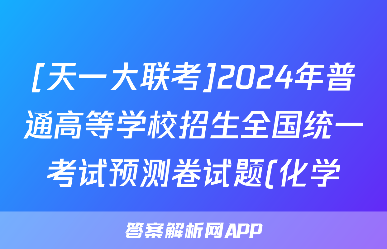 [天一大联考]2024年普通高等学校招生全国统一考试预测卷试题(化学)正在持续更新,目前2024-2025英语周报答案网为大家整理了相关试题及答案,供大家查缺补漏,高效提升成绩。