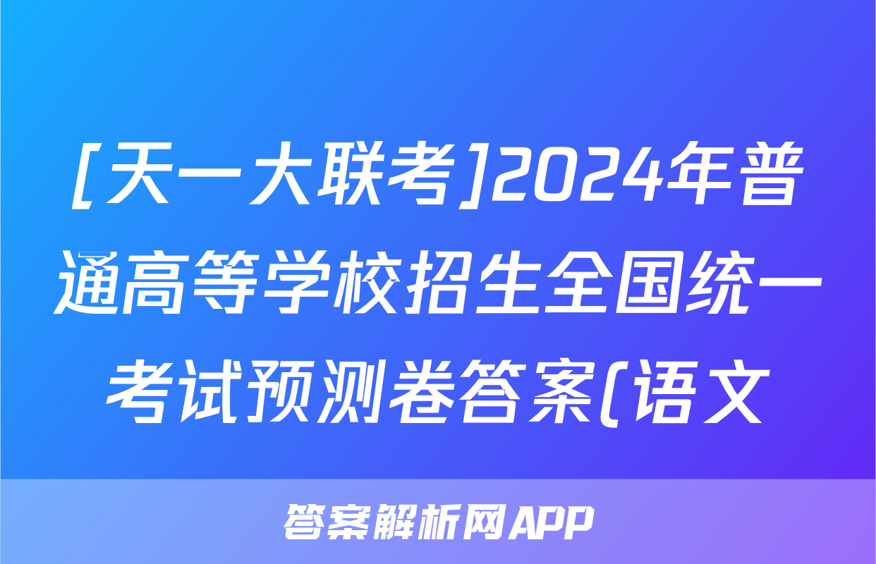 [天一大联考]2024年普通高等学校招生全国统一考试预测卷答案(语文)正在持续更新,目前2024-2025英语周报答案网为大家整理了相关试题及答案,供大家查缺补漏,高效提升成绩。