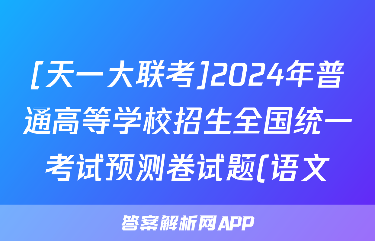 [天一大联考]2024年普通高等学校招生全国统一考试预测卷试题(语文)正在持续更新,目前2024-2025英语周报答案网为大家整理了相关试题及答案,供大家查缺补漏,高效提升成绩。