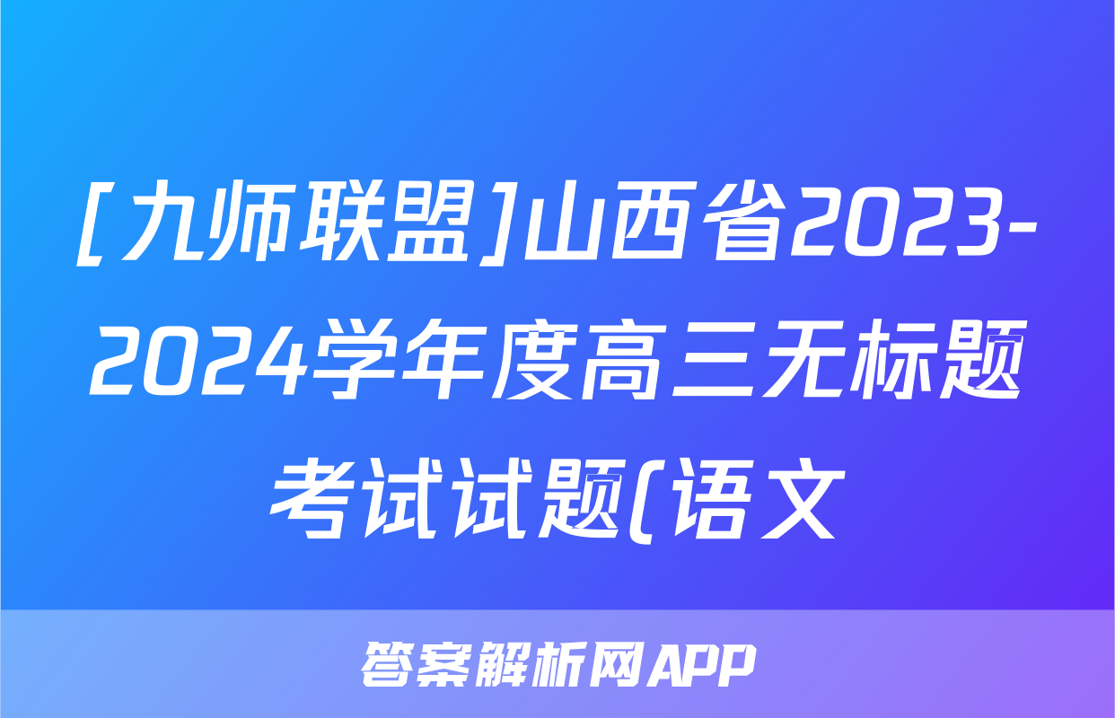 [九师联盟]山西省2023-2024学年度高三无标题考试试题(语文)正在持续更新,目前2024-2025英语周报答案网为大家整理了相关试题及答案,供大家查缺补漏,高效提升成绩。