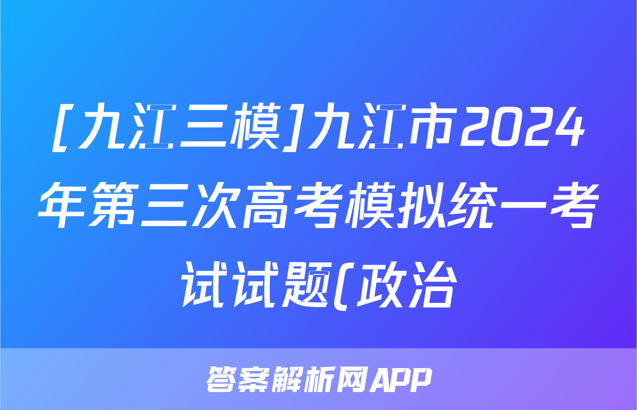 [九江三模]九江市2024年第三次高考模拟统一考试试题(政治)