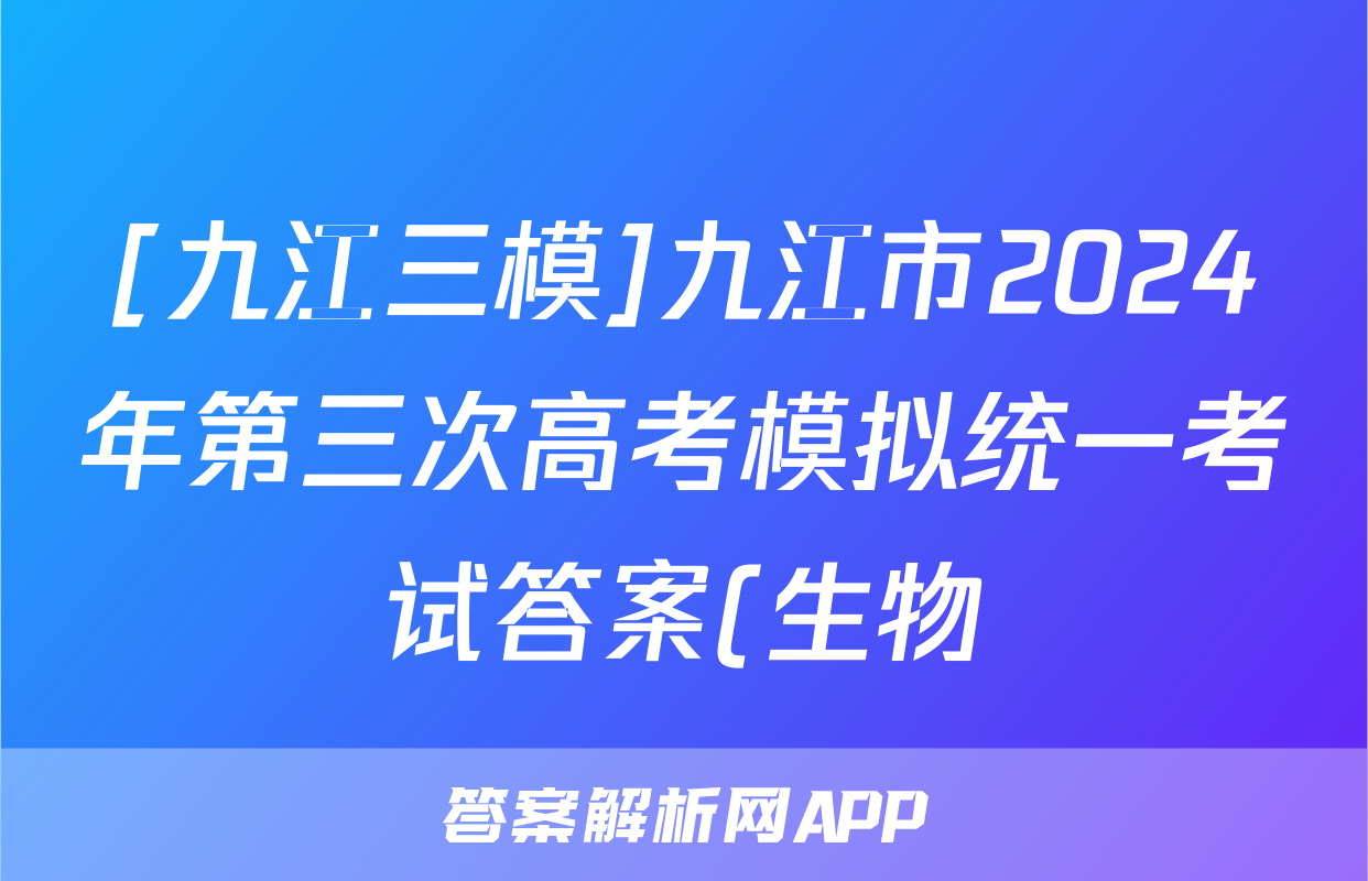 [九江三模]九江市2024年第三次高考模拟统一考试答案(生物)正在持续更新,目前2024-2025英语周报答案网为大家整理了相关试题及答案,供大家查缺补漏,高效提升成绩。