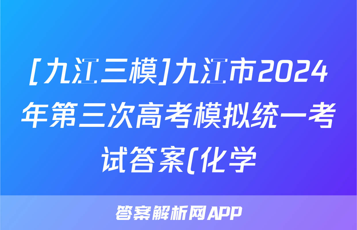 [九江三模]九江市2024年第三次高考模拟统一考试答案(化学)正在持续更新,目前2024-2025英语周报答案网为大家整理了相关试题及答案,供大家查缺补漏,高效提升成绩。