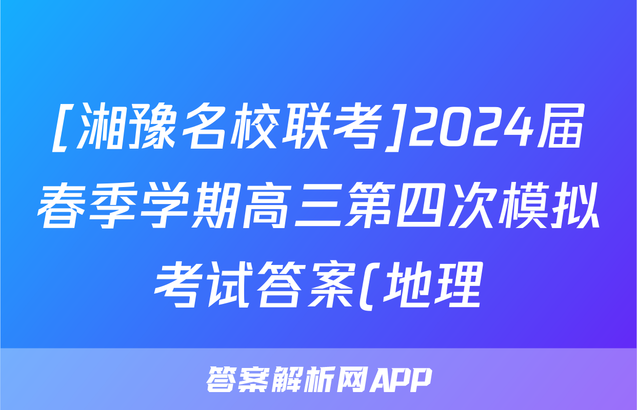 [湘豫名校联考]2024届春季学期高三第四次模拟考试答案(地理)正在持续更新,目前2024-2025英语周报答案网为大家整理了相关试题及答案,供大家查缺补漏,高效提升成绩。