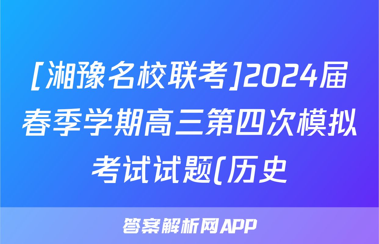 [湘豫名校联考]2024届春季学期高三第四次模拟考试试题(历史)正在持续更新,目前2024-2025英语周报答案网为大家整理了相关试题及答案,供大家查缺补漏,高效提升成绩。
