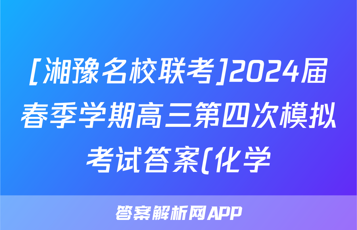 [湘豫名校联考]2024届春季学期高三第四次模拟考试答案(化学)正在持续更新,目前2024-2025英语周报答案网为大家整理了相关试题及答案,供大家查缺补漏,高效提升成绩。