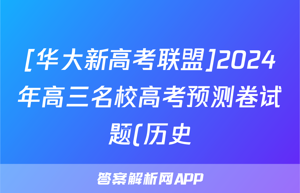 2、[华大新高考联盟]2024年高三名校高考预测卷答案(历史)