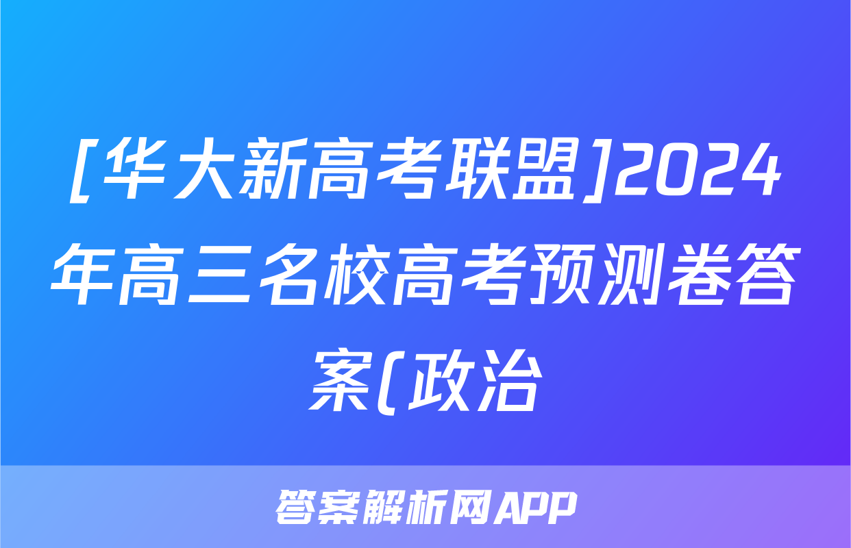 [华大新高考联盟]2024年高三名校高考预测卷答案(政治)