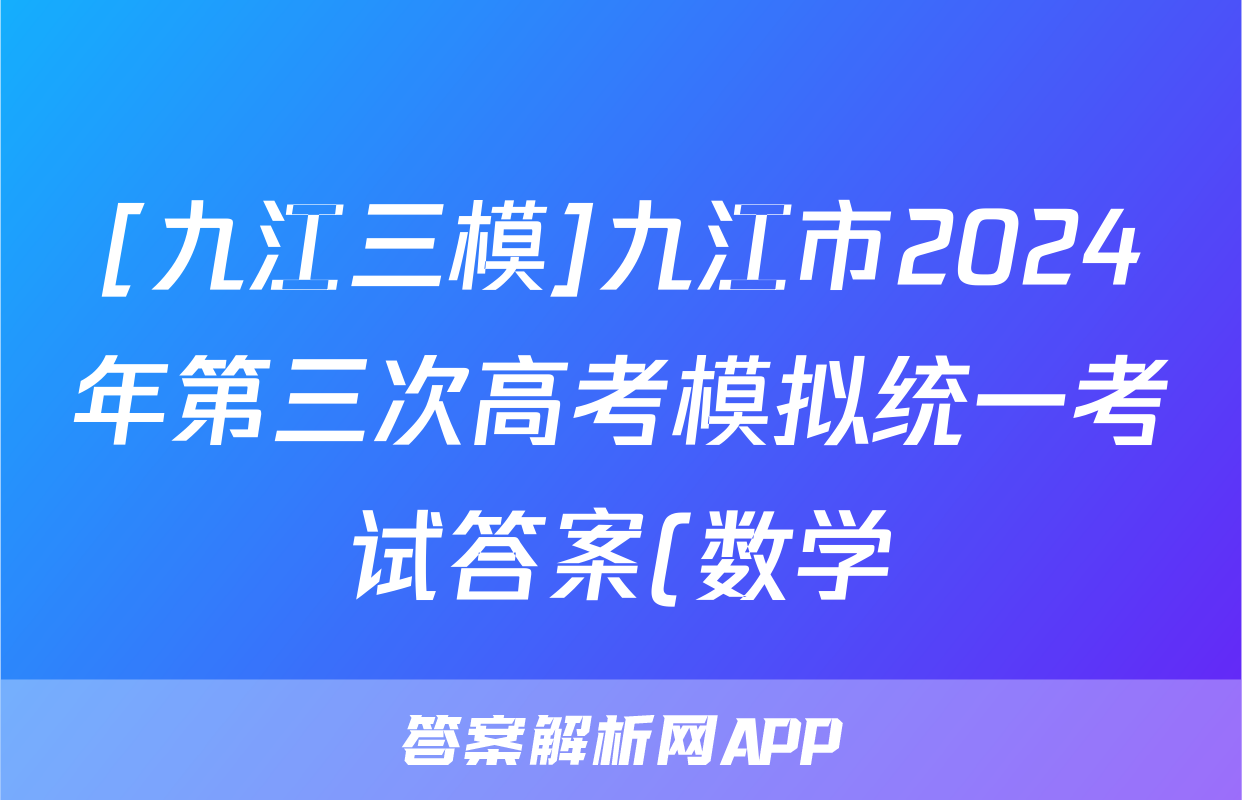[九江三模]九江市2024年第三次高考模拟统一考试答案(数学)正在持续更新,目前2024-2025英语周报答案网为大家整理了相关试题及答案,供大家查缺补漏,高效提升成绩。