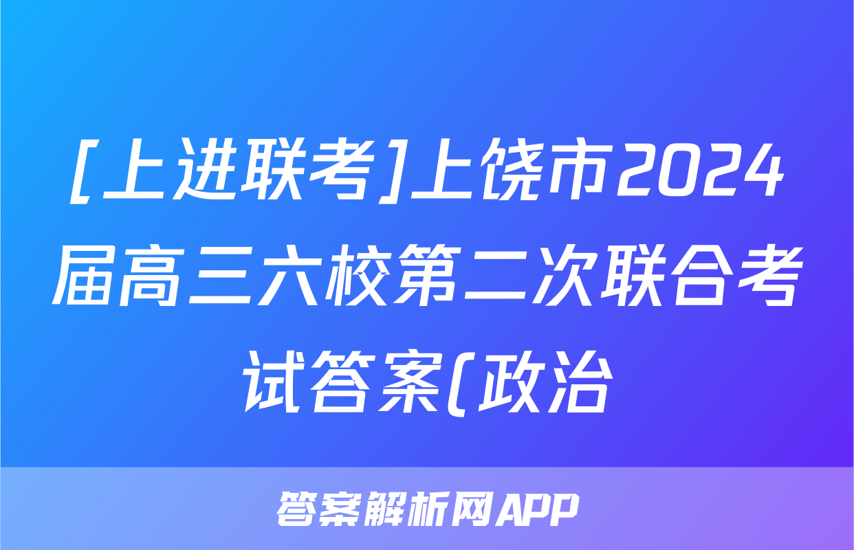 [上进联考]上饶市2024届高三六校第二次联合考试答案(政治)正在持续更新,目前2024-2025英语周报答案网为大家整理了相关试题及答案,供大家查缺补漏,高效提升成绩。