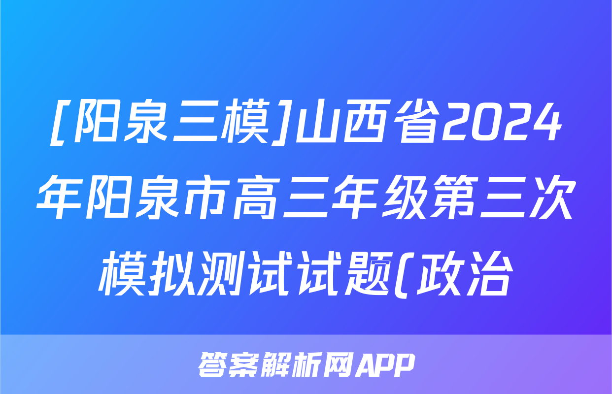 1、山西省2024年阳泉市高三年级第三次模拟测试(阳泉三模)试题(政治)