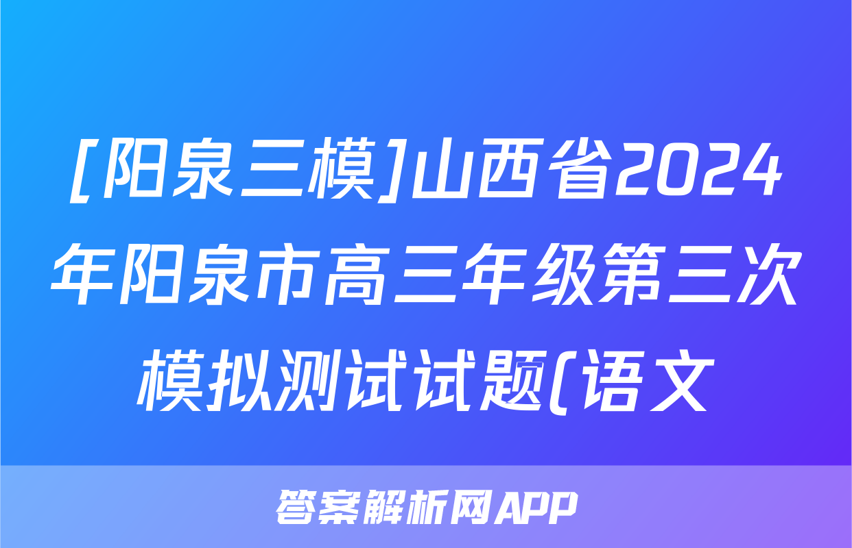 [阳泉三模]山西省2024年阳泉市高三年级第三次模拟测试试题(语文)正在持续更新,目前2024-2025英语周报答案网为大家整理了相关试题及答案,供大家查缺补漏,高效提升成绩。