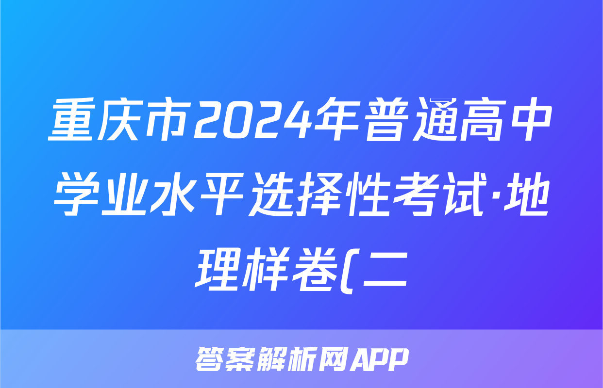 重庆市2024年普通高中学业水平选择性考试·地理样卷(二)2[24·(新高考)高考样卷·地理·CQ]试题正在持续更新,目前2024-2025英语周报答案网为大家整理了相关试题及答案,供大家查缺补漏,高效提升成绩。