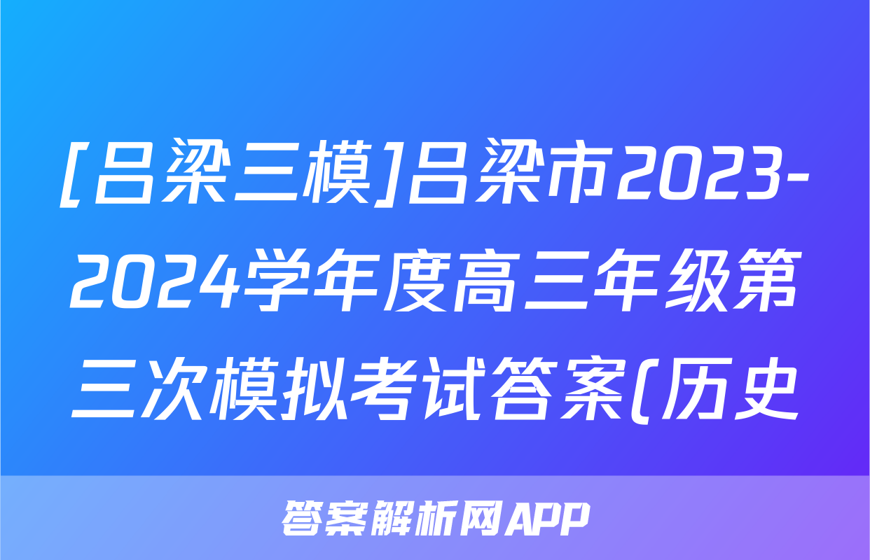 [吕梁三模]吕梁市2023-2024学年度高三年级第三次模拟考试答案(历史)正在持续更新,目前2024-2025英语周报答案网为大家整理了相关试题及答案,供大家查缺补漏,高效提升成绩。