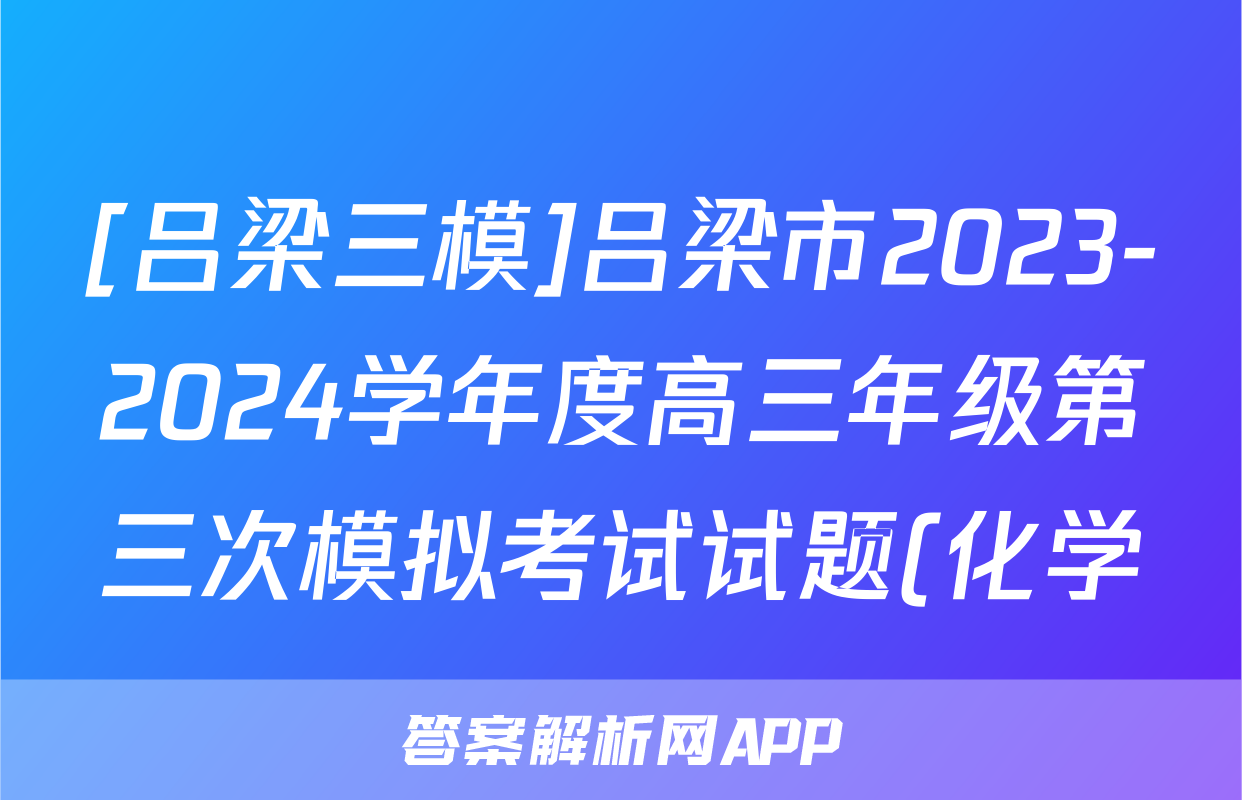 [吕梁三模]吕梁市2023-2024学年度高三年级第三次模拟考试试题(化学)正在持续更新,目前2024-2025英语周报答案网为大家整理了相关试题及答案,供大家查缺补漏,高效提升成绩。