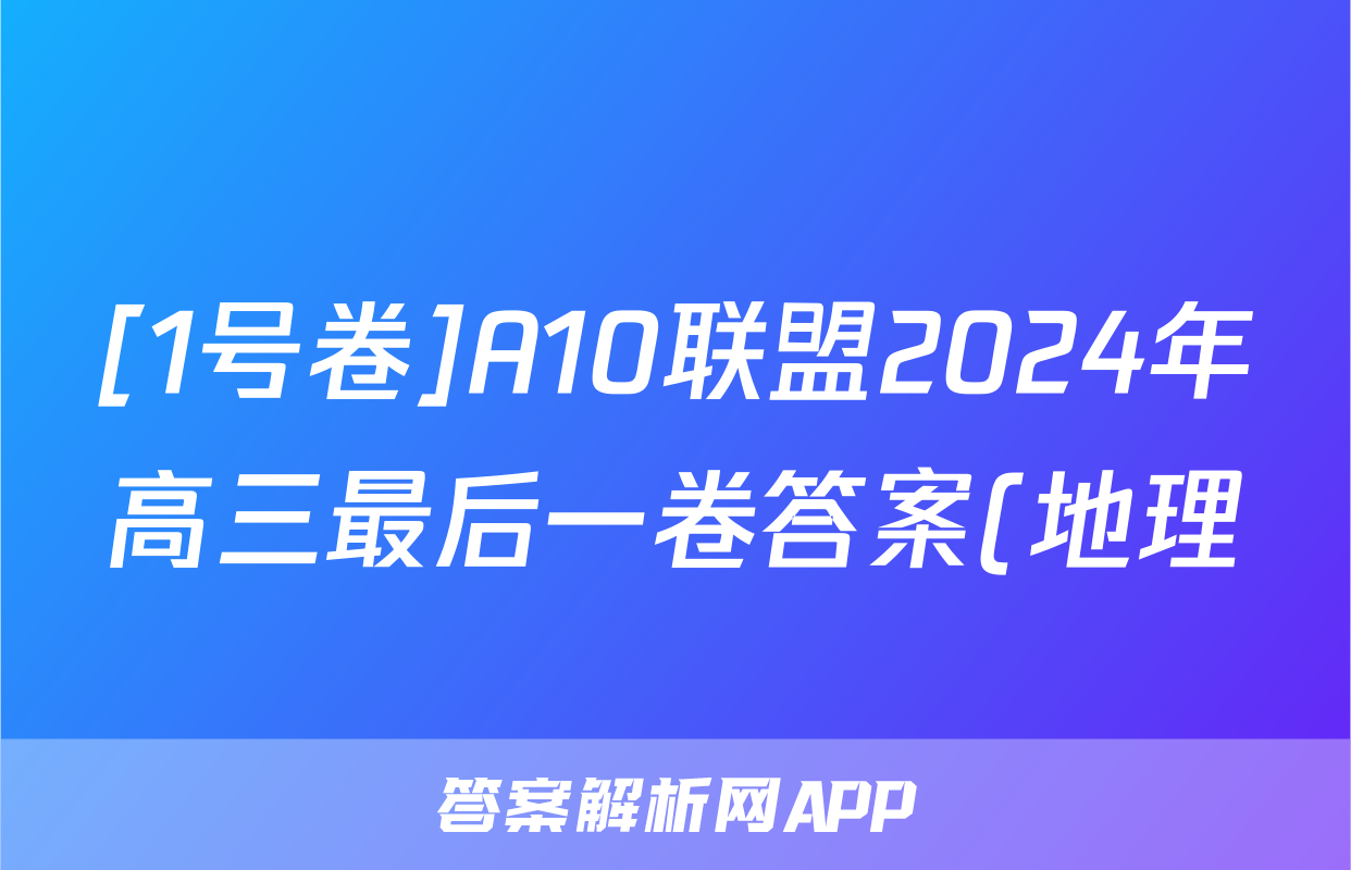 [1号卷]A10联盟2024年高三最后一卷答案(地理)正在持续更新,目前2024-2025英语周报答案网为大家整理了相关试题及答案,供大家查缺补漏,高效提升成绩。