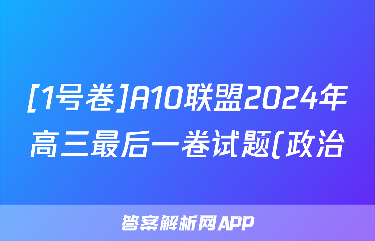 [1号卷]A10联盟2024年高三最后一卷试题(政治)正在持续更新,目前2024-2025英语周报答案网为大家整理了相关试题及答案,供大家查缺补漏,高效提升成绩。