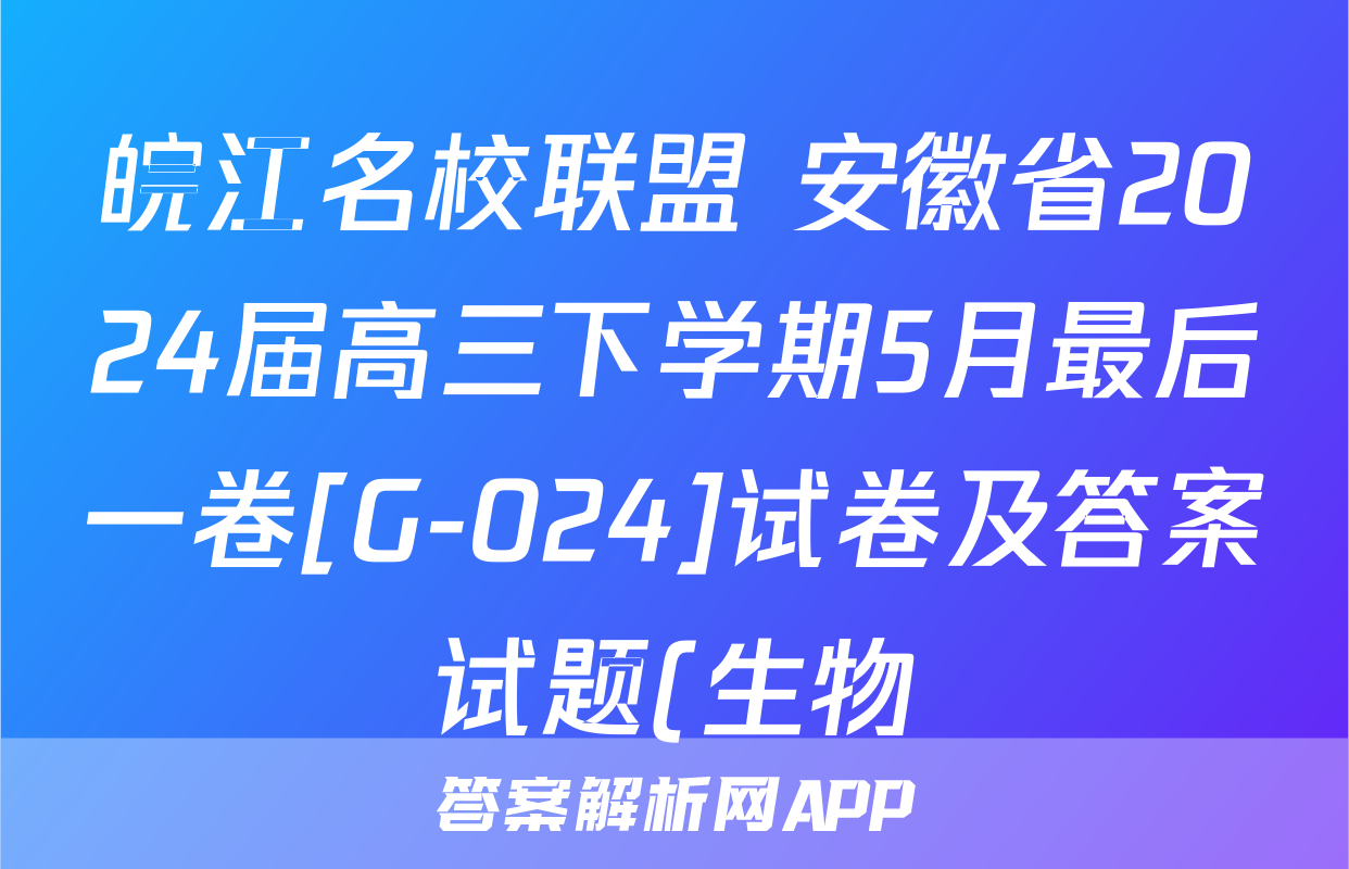 皖江名校联盟 安徽省2024届高三下学期5月最后一卷[G-024]试卷及答案试题(生物)正在持续更新,目前2024-2025英语周报答案网为大家整理了相关试题及答案,供大家查缺补漏,高效提升成绩。